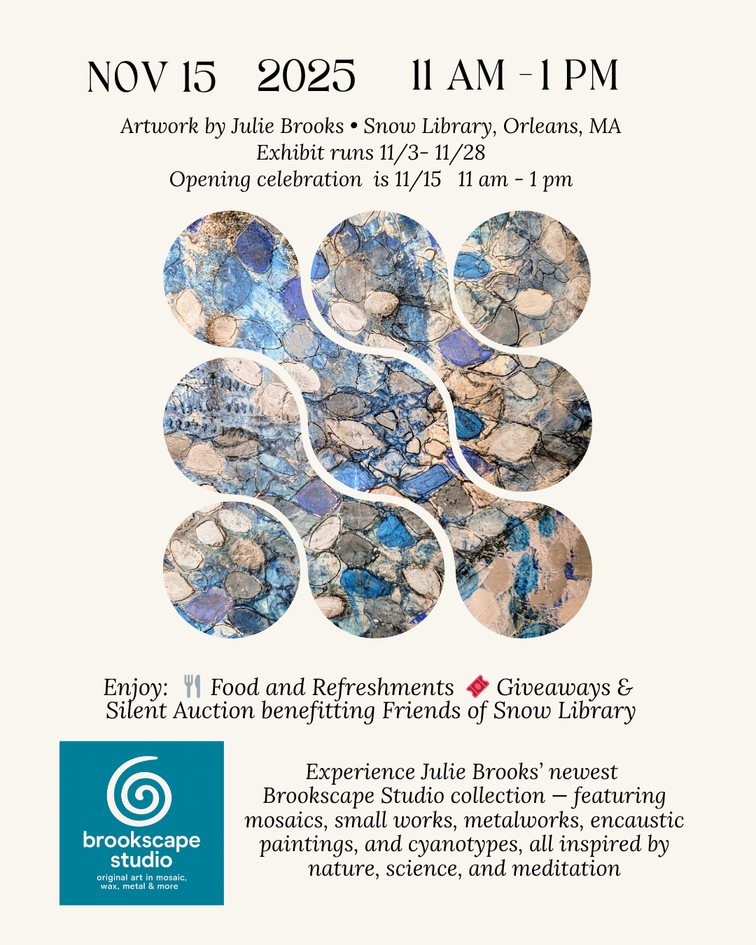 Discover Brookscape Studio β artworks by Julie Brooks in mosaic, metal, paint, and more β featuring unique small works perfect for gifting and collecting.