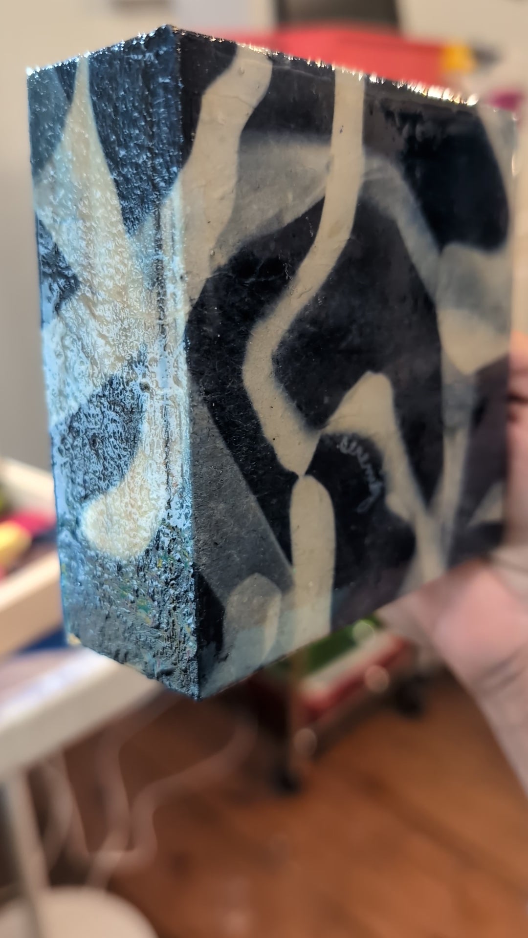 Medium: resined cyanotype monoprint wrapped around a wooden panel