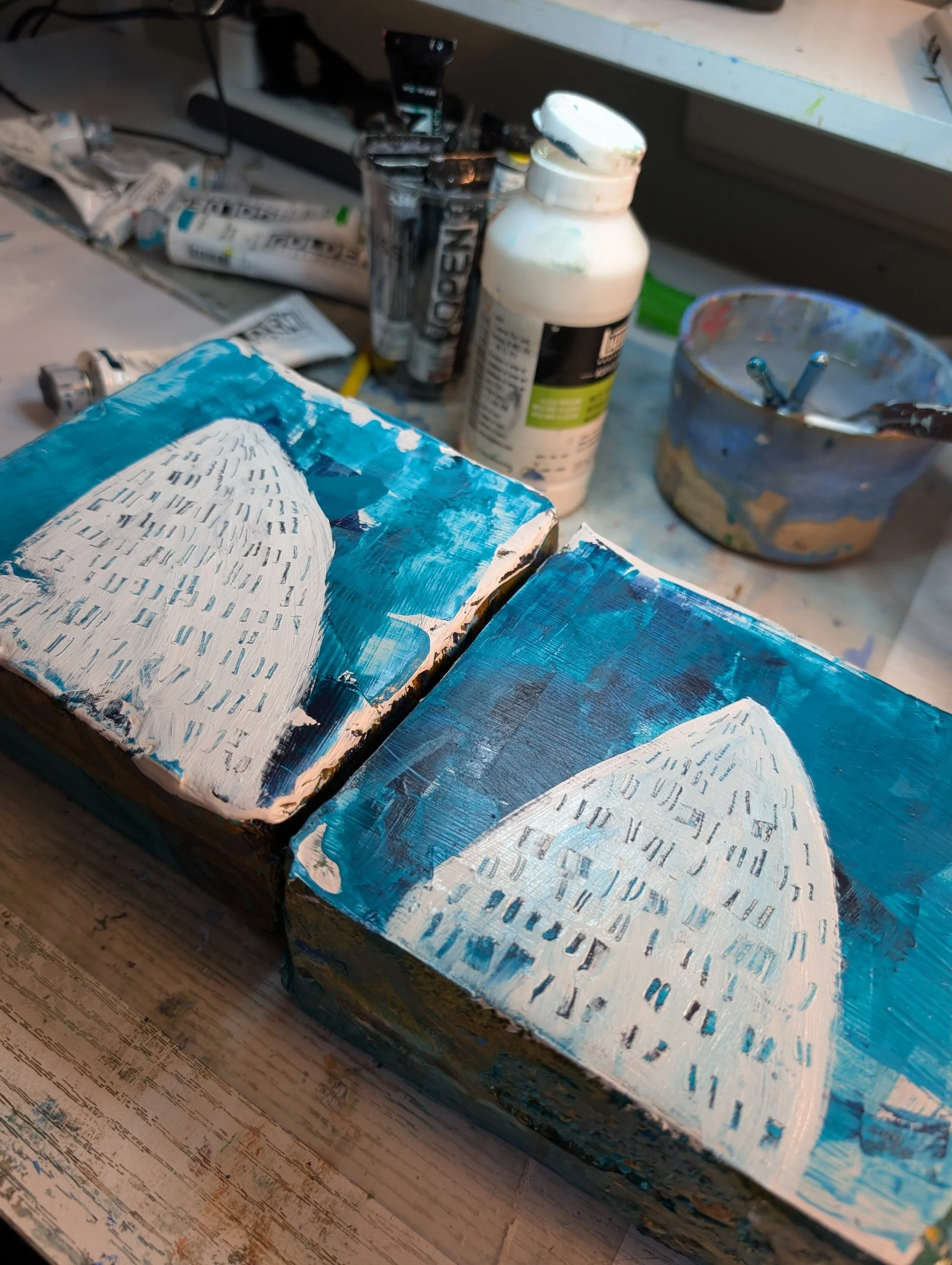 When I have two pieces going, they start to influence each other. I’ll try something in one, then respond to it in the other. Colors shift, marks evolve, and the idea gets stretched instead of locked in too early.